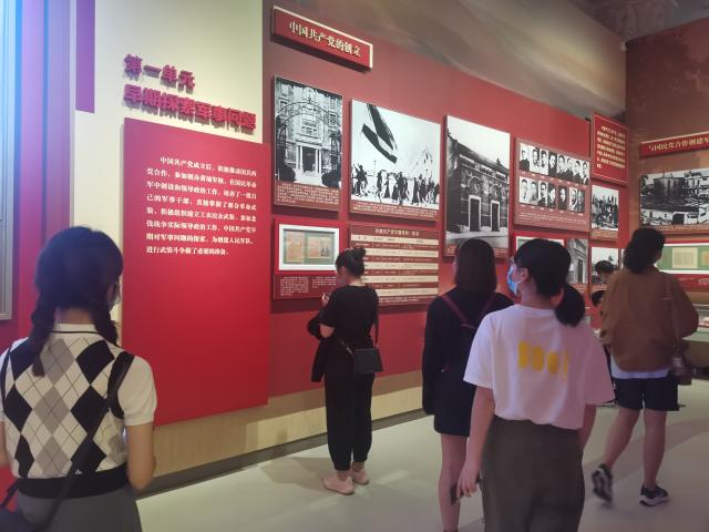 参观过程中,同学们认真地阅读展品旁的介绍,驻足观看解说视频,受到了强烈的视觉冲击和感观震撼。支部成员重点参观了“在党的旗帜下前进——人民军队庆祝中国共产党成立100周年”主题展览,展览展出了文物实物1580余件、照片800余张和大量历史文献、图表制字、视频短片等,打造了“三湾改编”、“古田会议”、“决胜千里党指挥”、“重整行装再出发”、“在战位向党和人民报告”等景观,回顾了党缔造和领导人民军队的光辉历程,突出展示了习主席领导推进新时代强军事业的伟大实践,生动反映了人民军队永远听党话、跟党走的赤胆忠诚。
