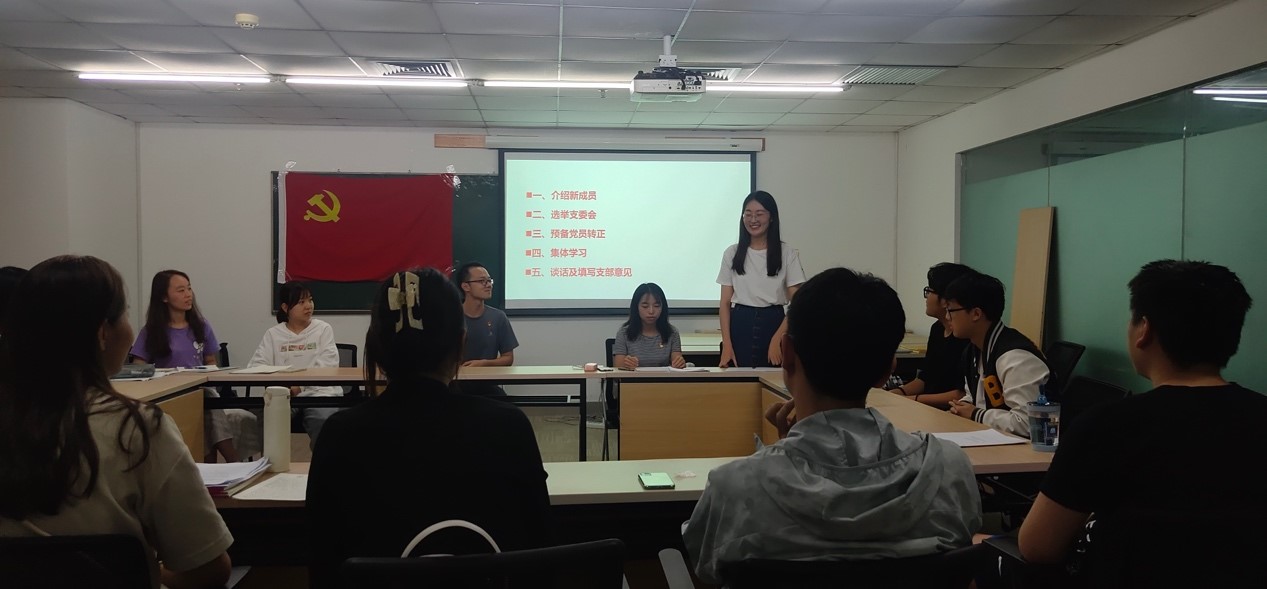 2021年9月17日,潮人论坛 经济学第三党支部于京师大厦9408会议室召开第三党支部全体成员大会,讨论关于左佳弘同志、房慧同志转正的事宜,并学习习近平总书记重要讲话精神。会议由党支部书记袁胜轩同志主持。