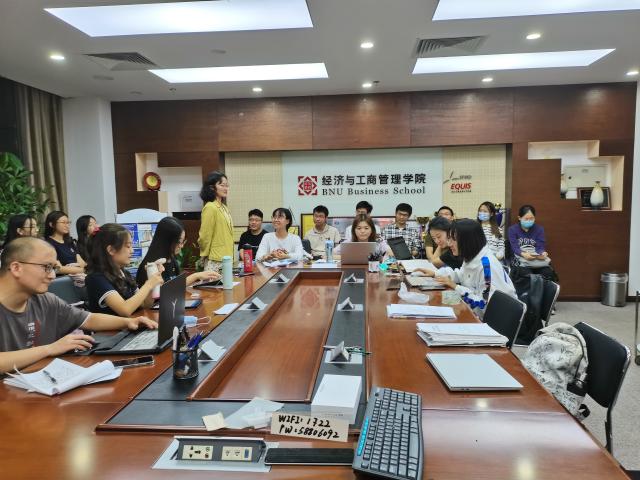 首先,武艳芳同志简单介绍了国际贸易第二党支部的组织结构,并欢迎了新转入的四名正式党员,他们分别为两名博士生党员刘珊珊和刘缘、两名硕士生党员吕芳和李显。