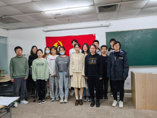 会议伊始,支部全体成员起立奏唱《国际歌》。党支部书记顾柠宣读发展会的主要议程,并清点本次会议的出席人数。实到会有表决权的人数超过应到会有表决权人数的半数,符合召开发展会的要求。四位发展对象在党旗下庄严地宣读了入党志愿书,讲述了自己对党的认识、入党动机以及递交入党申请书后的思想转变,表达了为党的伟大事业添砖加瓦的意愿。随后,入党介绍人介绍发展对象的有关情况,并表明愿意介绍其发展成为中共预备党员。支部书记顾柠同志宣读了发展对象的政审报告及公示结果,支部成员充分讨论了各位发展对象的现实表现与优缺点,并对其能否加入中国共产党表明意见。之后,支部正式党员进行了无记名投票,并由正式党员刘斯琪同志和袁大忠同志进行计票和监票,四名发展对象均获得全票赞成。支部副书记刘晨蕊同志填写接收预备党员票决情况汇总表并由支部书记顾柠宣读,顾柠同志宣读接收预备党员的决议。随后,郭传孜、于凯航、刘紫涵、王梦婕同志分别发表了感想,表示感谢支部成员的信任,将虚心听取意见,继续发扬优点,改进缺点与不足,为成为一名合格的共产党员而不懈努力。支部书记顾柠表示,党支部将通过“三会一课”、组织生活会、听取本人汇报、个别谈心等方式对预备党员进行教育和考察,希望党员同志们进一步加强党性修养,不仅要实现组织上入党,更要做到思想上入党。