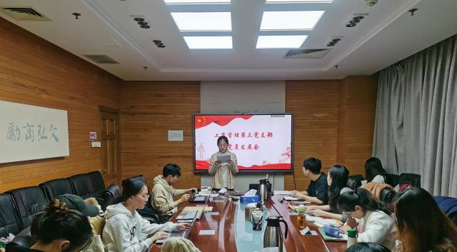 2021年11月18日,潮人论坛 工商管理第三党支部在后主楼1610会议室召开党员发展会,讨论关于杨季枫、王子怡、赵洋三位同志的发展事宜。会议由党支部书记薛佳安同志主持。学院党委组织员、专职辅导员王骏老师列席指导。