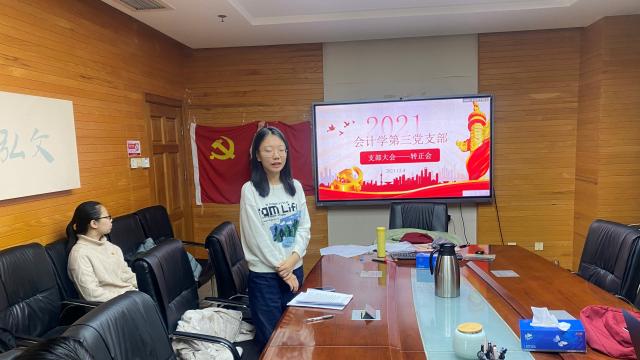 2021年12月4日和11日,潮人论坛 会计学第三党支部分别于后主楼1629会议室和1610会议室召开党员转正会,讨论关于王小龙、李妍姝、冒雅言、孙琳、阳强琳等五位同志的转正事宜。会议由党支部书记徐盛怡主持。