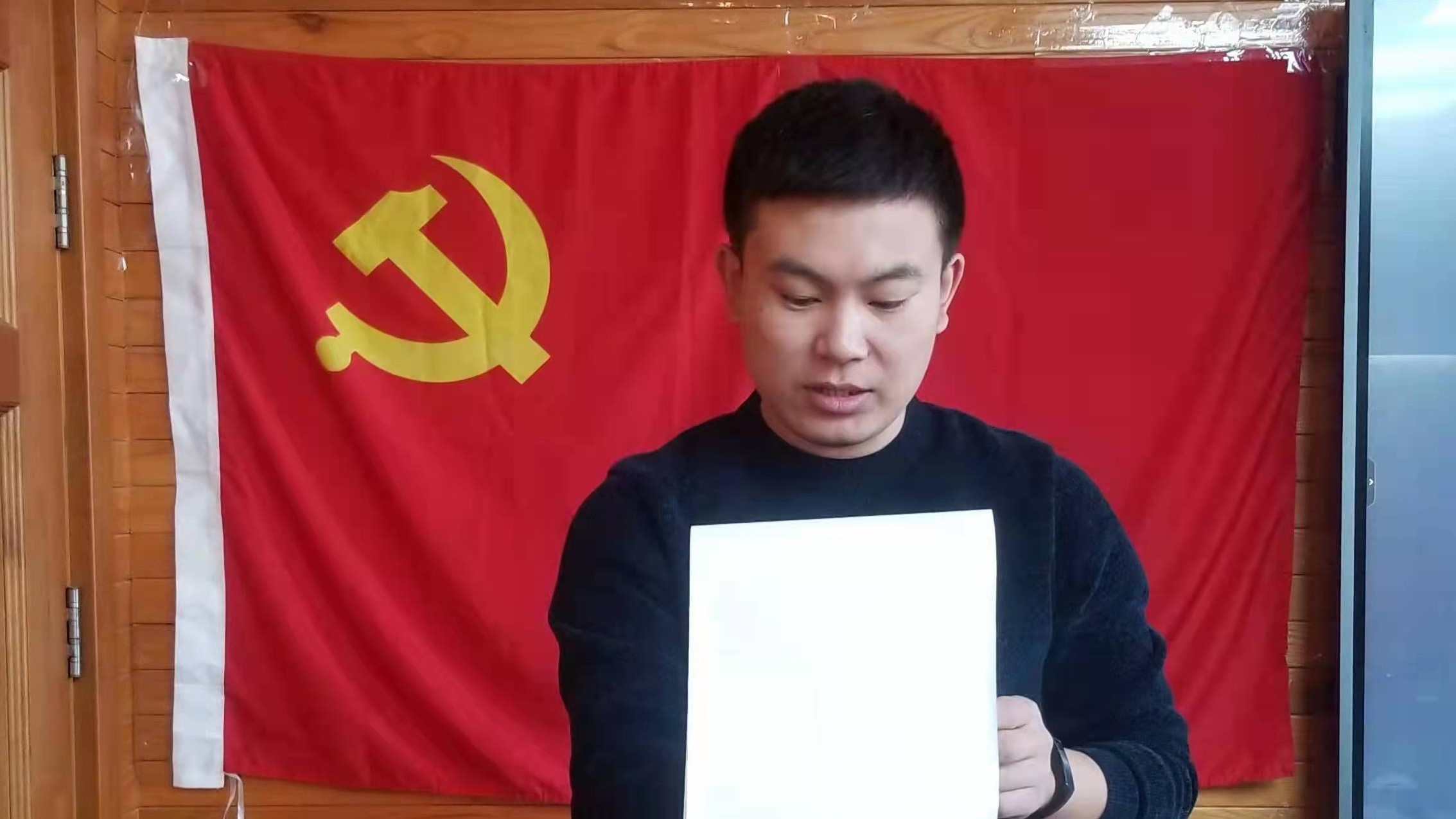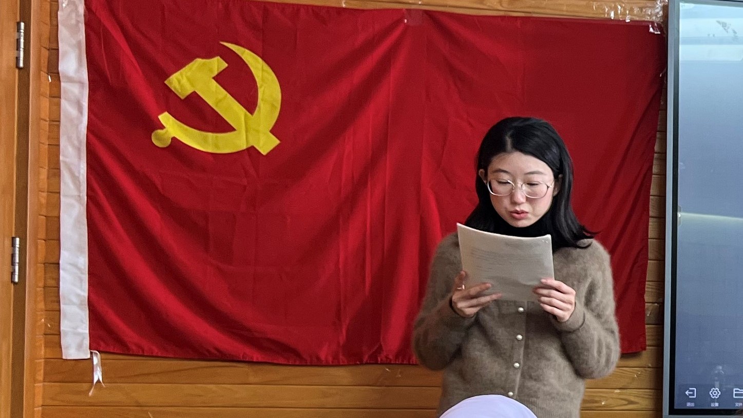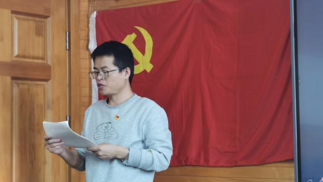 按照党员转正流程要求,会议开始,全体党员起立,面向党旗奏唱《国际歌》,支部书记冯智莹介绍本次党员大会的主要议程以及出席人员情况。