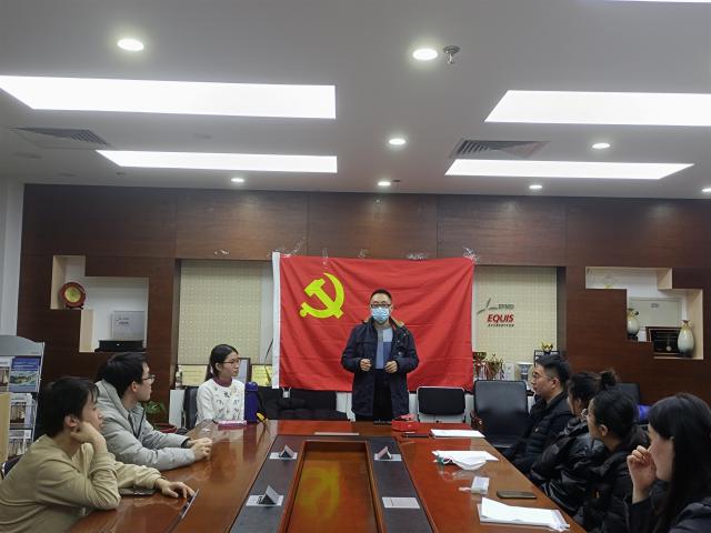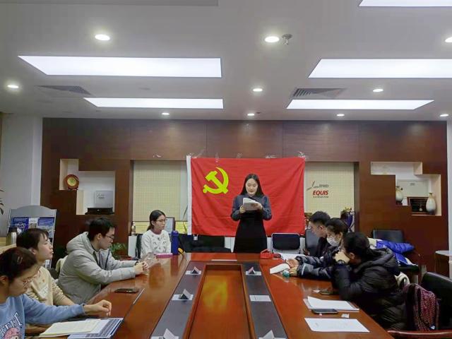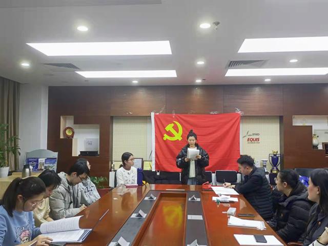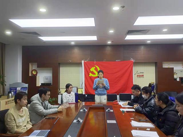 会议开始,全体党员起立,面向党旗齐唱《国际歌》。党支部书记齐祺介绍了转正会议议程及本次会议党员的出席情况。接着,三位申请转正的预备党员依次宣读转正申请书,汇报自己做在预备期间学习、工作、生活方面的表现,并表达了按期转为正式党员的愿望。