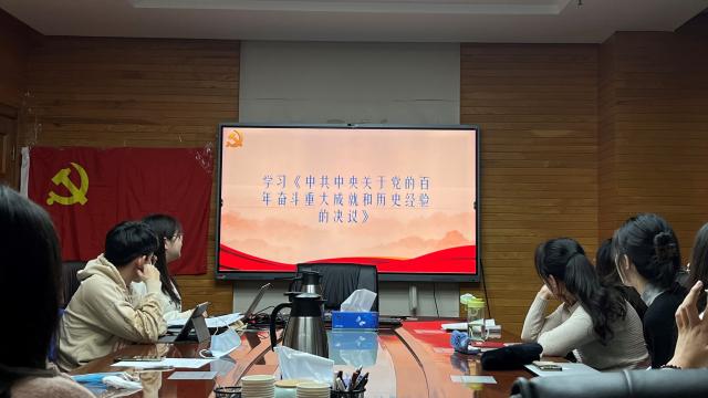 在集体学习环节,支部成员共同学习了党的十九届六中全会精神并分享学习感悟。结合央视网微视频,支部成员共同深入了解十九届六中全会的议程及会议概况。接着,支部书记薛佳安从一个根本问题、两个确立、三个需要、四大历史时期、五大历史意义和十个坚持等关键词出发,带领支部成员共同学习了十九届六中全会会议精神及公报内容。作为会议的重要成果,支部成员通过央视新闻视频具体学习《中共中央关于党的百年奋斗重大成就和历史经验的决议》。支部成员针对学习内容,围绕自身学习感悟,展开了积极的讨论,发表了自己的感想。其中,胡植表示《决议》内容丰富,配合习近平总书记对于《决议》的说明来学习能让我们对党的百年奋斗重大成就和历史经验有更为深入的了解,身为一名共产党员,要有责任感以及胸怀天下的气概和坚持自我革命的精神,养成定期总结、自我批评反思的习惯。李龙迪谈到,《公报》用了大量篇幅对党过去一百年做了总结,使其了解到党百年奋斗历程的艰辛与伟大成就,作为青年党员,要坚持党的领导不动摇,坚定走中国特色社会主义道路。