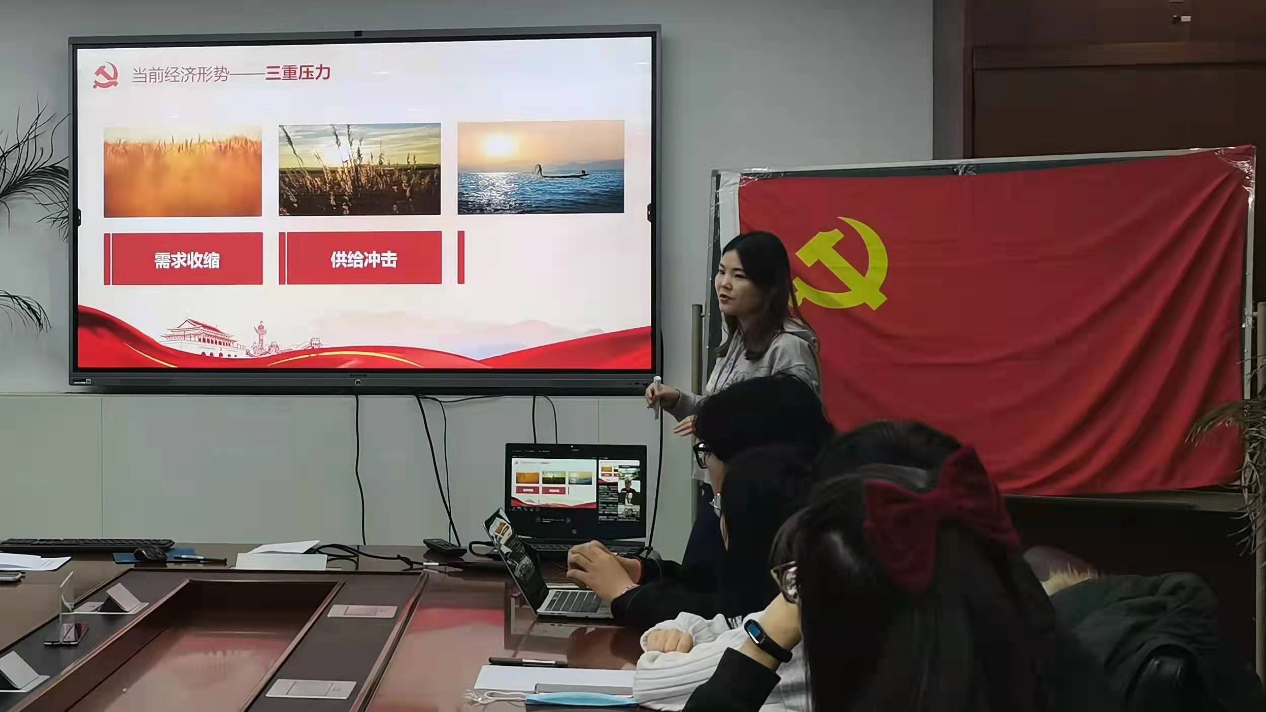 首先,支部安露露同志带领大家学习了2021年中央经济工作会议精神,她结合专业知识对报告内容展开了详细的介绍。安露露同志对“三重压力”、“四个必须”、“五个重大理论”、“七大政策”和“稳字当头”,进行了精彩的解读。大家从她的讲解中对我国当前的经济形势、未来一年的经济部署等有了更清晰的认识。