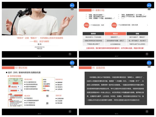 最后,魏涛同志从自身科研经历出发,分享了科研道路上的一些实践感悟。他提到,科研效率会受到技术和能力两个因素的影响。具体而言,技术包括导师指导策略、文献领悟技巧、科研工具运用等方面,而能力则体现在一个学术研究者的科研天赋强、理论基础深、外语水平强、思维逻辑棒,智商高等优势。他以问卷调研的方式获取小样本数据并进行了实证检验,发现主要技术指标对科研绩效有显著的正效应。此外,魏涛同志强调了在论文写作当中理论和逻辑的重要性,这远比华丽的公式、复杂的模型更有价值。最后,他结合自己从写稿、投稿、被拒稿到发表论文的经历,告诉同学们要学会面对科研路上的荆棘与坎坷,让学术成为生活的情怀与理想。