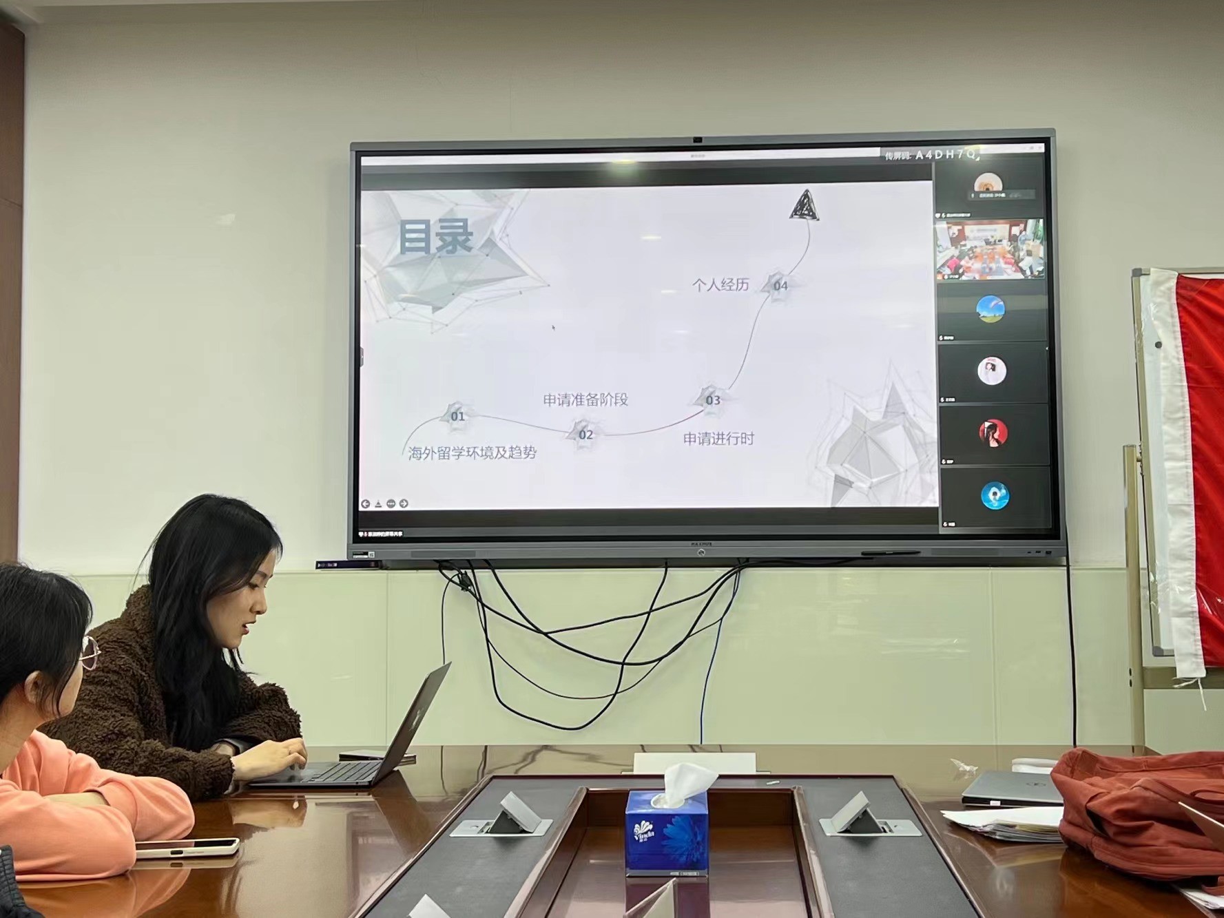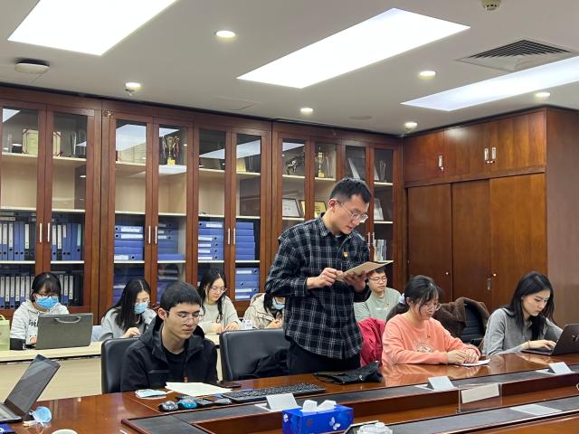 会议伊始,预备党员章淑婷同志为大家介绍留学申请大环境并分享申请经验。她首先介绍了当前全球疫情形势下海外留学形势与发展趋势,以及海外留学生的毕业去向等。在疫情常态化的背景下,海外留学回暖,越来越多的同学重返留学道路,国家也对此表示积极态度,但随着内卷加剧,同学们需要提高自己的软实力。接着,她依次介绍了申请前准备和申请季阶段的注意事项,之后又结合自己哥伦比亚大学和伦敦政治经济学院经济学硕士的申请经验为大家分享了个人心路历程,并为学弟学妹们提出建议。最后,她鼓励同学们相信自己,合理安排任务计划并踏实认真地完成,以平稳积极的心态面对未来。