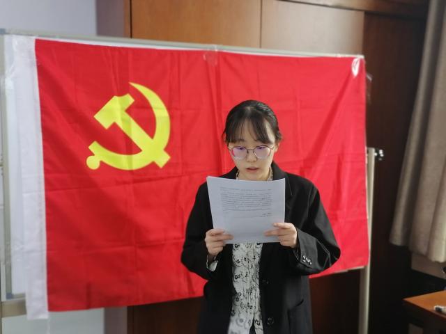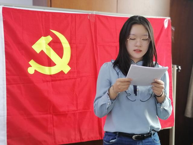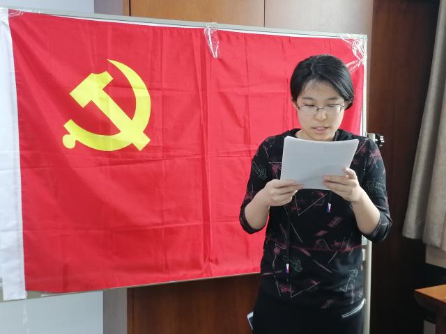 会议开始,全体党员起立,面向党旗齐唱《国际歌》。党支部书记管旭介绍会议议程及本次会议党员的出席情况。