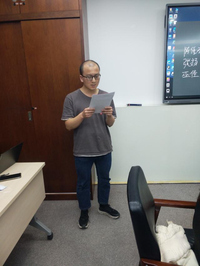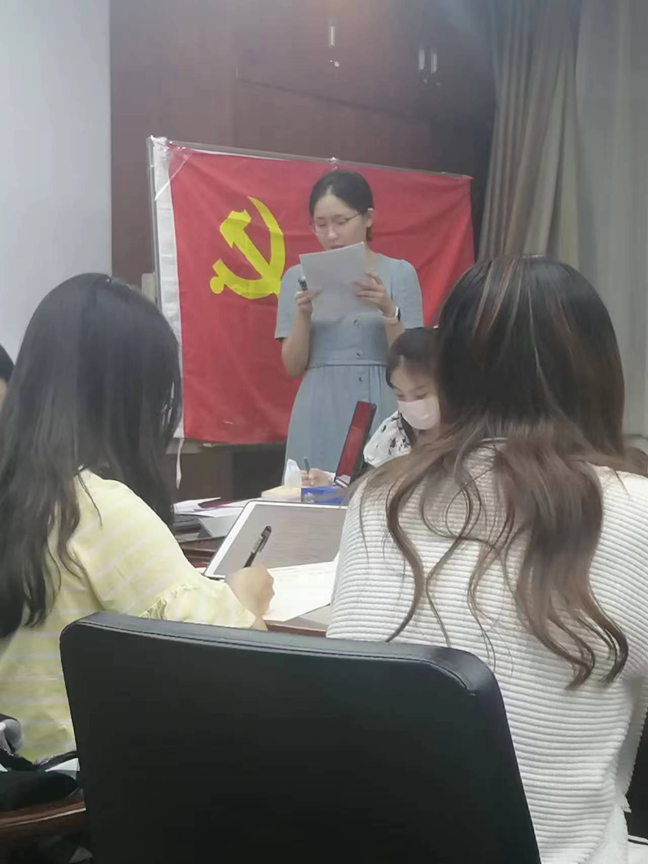 转正会议伊始,全体起立,面向党旗奏唱《国际歌》。支部书记武艳芳同志介绍了本次支部大会的主要议程和出席人员情况。之后,申请转正的预备党员依次向支部大会提出转正申请,汇报了自己预备期间思想、学习、工作、生活上的表现与进步,表达了自己按期转正的愿望。