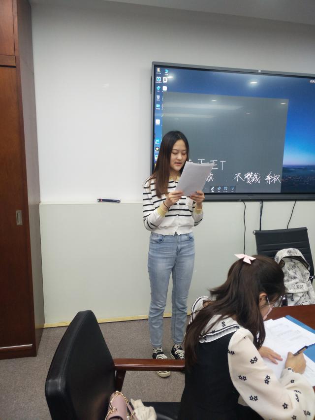 支部大会采取无记名投票方式,对以上同志能否按期转正分别进行了无记名投票。监票和计票结束后,武艳芳同志分别宣读了各位同志的票决情况及大会决议,并祝贺韦海婷、乔颖、武正宜、韩卓秀、殷佳琳、殷华磊、巫佳、张杨、陈佳璇和李志永同志按期成功转正。 转正同志依次表达了对党组织的感想及自己的喜悦之情,并表示自己在未来将会更加努力学习科学文化知识和思想政治理论,努力成为一名合格的中国共产党正式党员。
