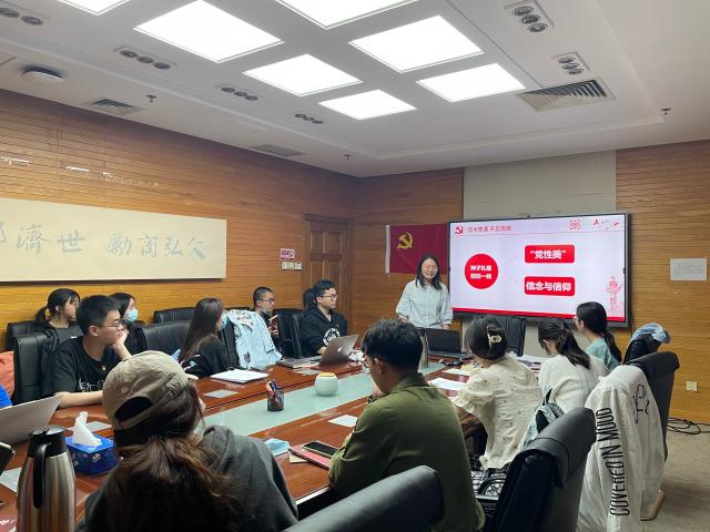 2022年4月25日,潮人论坛 工商管理第二党支部于后主楼1610会议室召开支部党员大会。会议内容主要有三项:一是讨论预备党员庞彦同志的转正事宜,二是开展发展对象的民主投票,三是开展积极分子与党员交流会。会议由支部书记史玖琦主持。