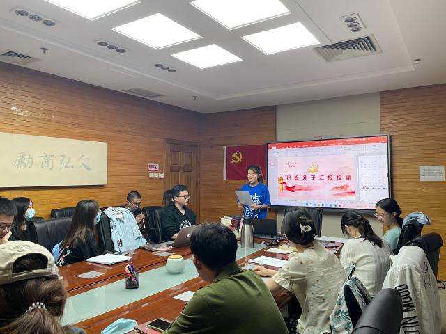 会议开始,全体党员起立,面向党旗齐唱《国际歌》。首先是讨论预备党员庞彦同志的转正事宜。支部书记介绍转正会议议程及本次会议党员的出席情况。庞彦同志在党旗下宣读转正申请书。她以实事求是的态度对待自己在预备期间取得的成绩和存在问题,分别在思想、学习、生活三方面汇报了自己的基本情况。支部党员何丰耘同志介绍了庞彦同志在预备期间的表现及教育、考察情况并提交支部大会讨论。全程和杨婧同志认为庞彦同志在学习上成绩优异,在生活中乐于助人,具有良好的群众基础,希望未来加强与支部党员的交流,努力达到一名党员的要求。之后10名与会正式党员采用无记名投票的方式对是否庞彦同志按期转为正式党员进行表决。由支部书记宣读票决情况和支部大会决议,同意庞彦同志按期转正。庞彦发表了自己的感想,感谢党组织的认可与接纳,并表示未来将继续提高思想和实践水平,运用所学所思为我国的社会主义事业贡献自己的力量。