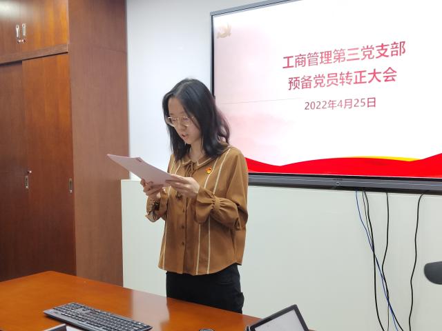 通过本次党员大会,工商管理第三党支部正式党员队伍进一步壮大,为支部注入了新的活力;依托对国家“十四五”数字经济发展规划的学习,支部成员加深了对于专业理论知识的学习;通过积极分子的个人展示交流,拉进了积极分子与党组织的联系,对提升支部理论教育的深入性以及凝聚力具有重要意义。