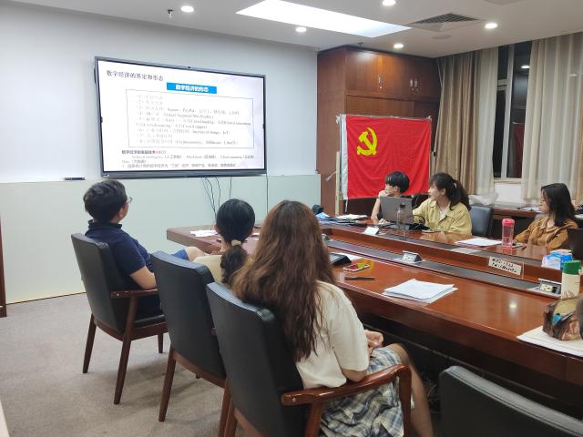 最后,支部正式党员徐凯歌同志为支部讲授《国家“十四五”数字经济发展规划》微党课。徐凯歌首先向大家介绍了数字经济的界定和形态,接着从习近平关于数字经济的重要论述、国家十四五规划中的数字经济以及数字经济十四五发展规划三个方面,结合视频及政策解读,向支部成员介绍了国家数字经济发展的必要性、发展现状与未来趋势。数字经济作为工商管理学科研究领域的热点话题,支部成员纷纷结合自身专业知识,展开讨论,进一步提升了支部成员理论学习的针对性。