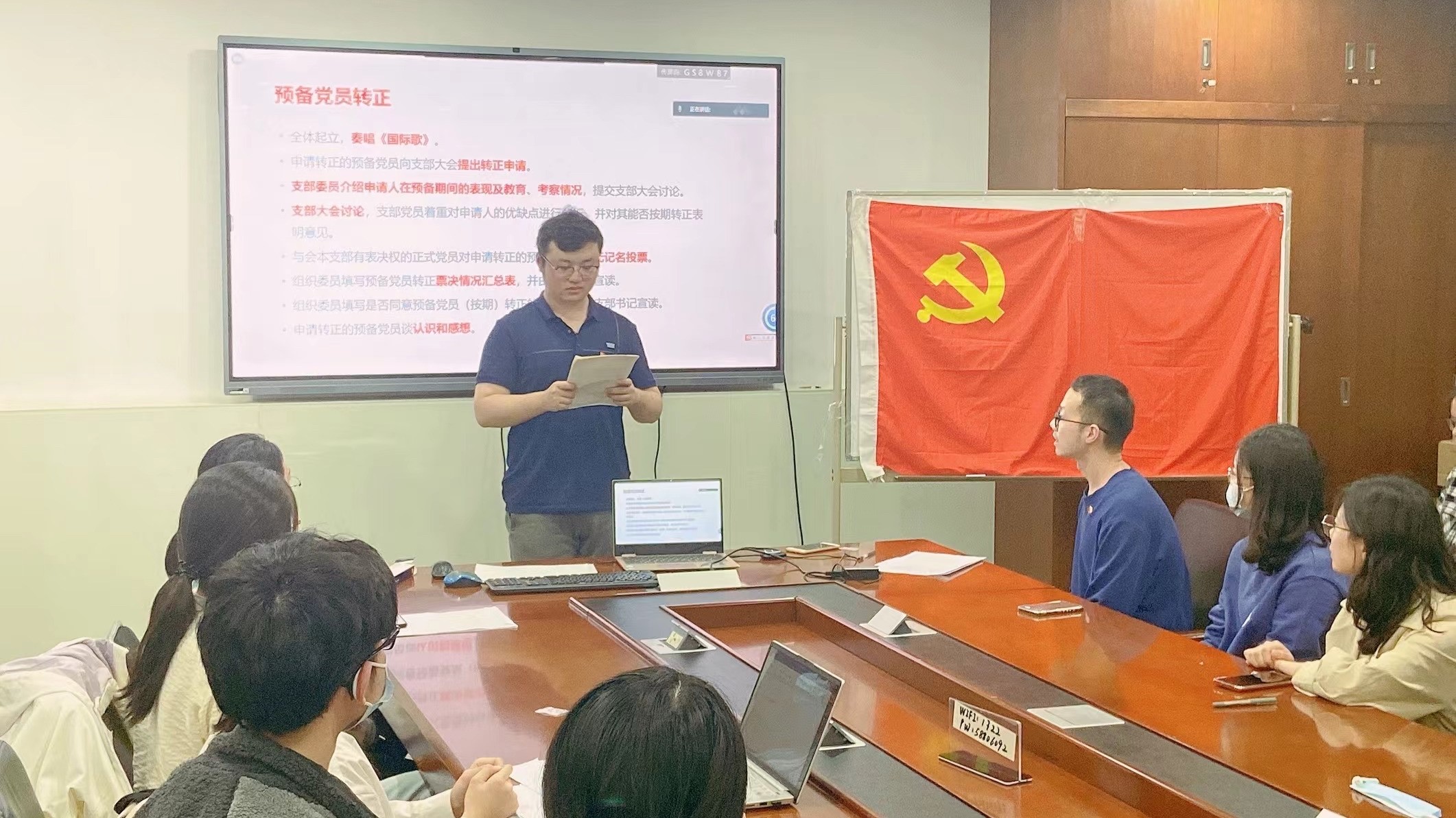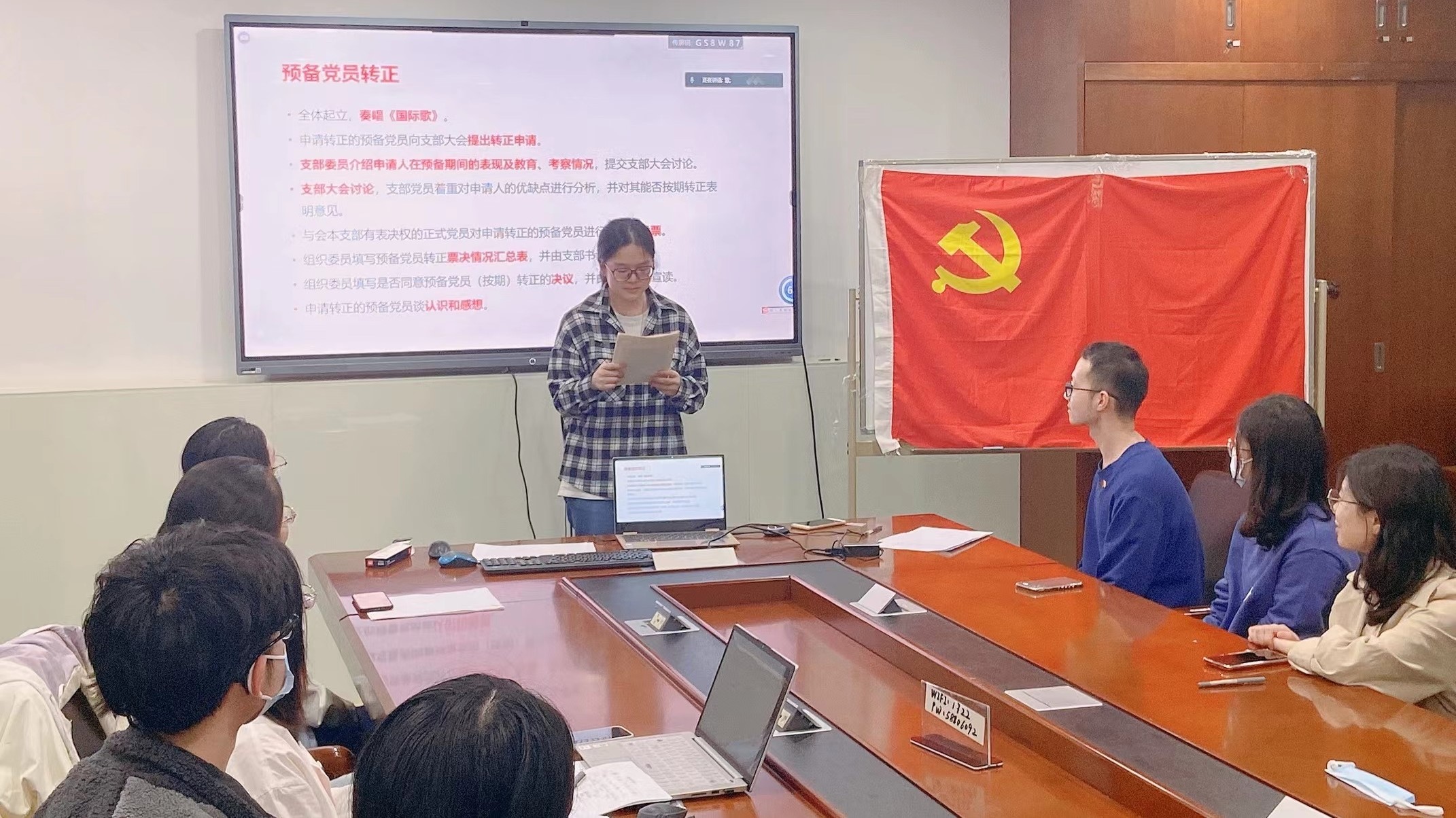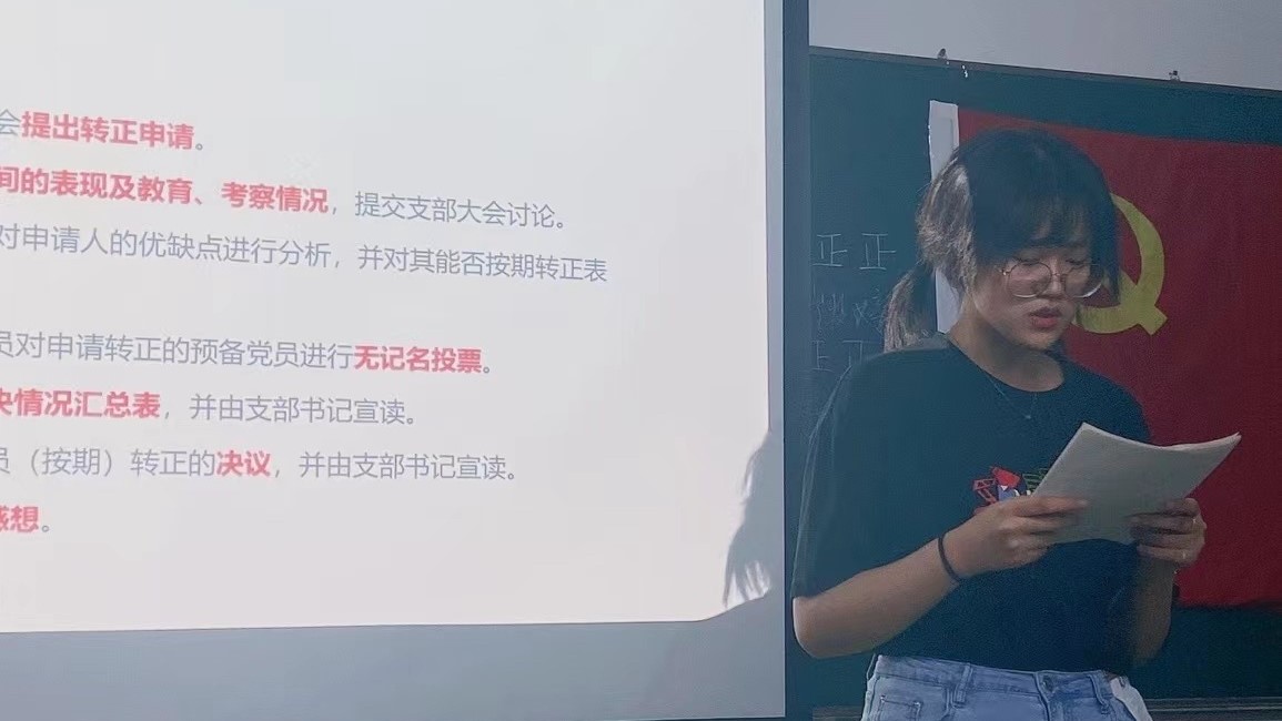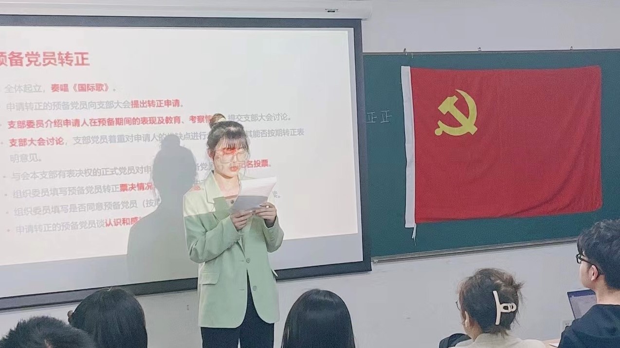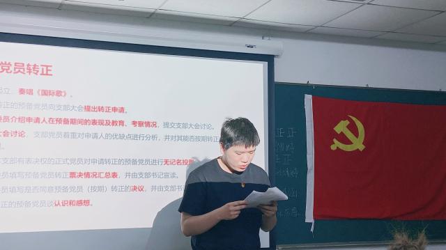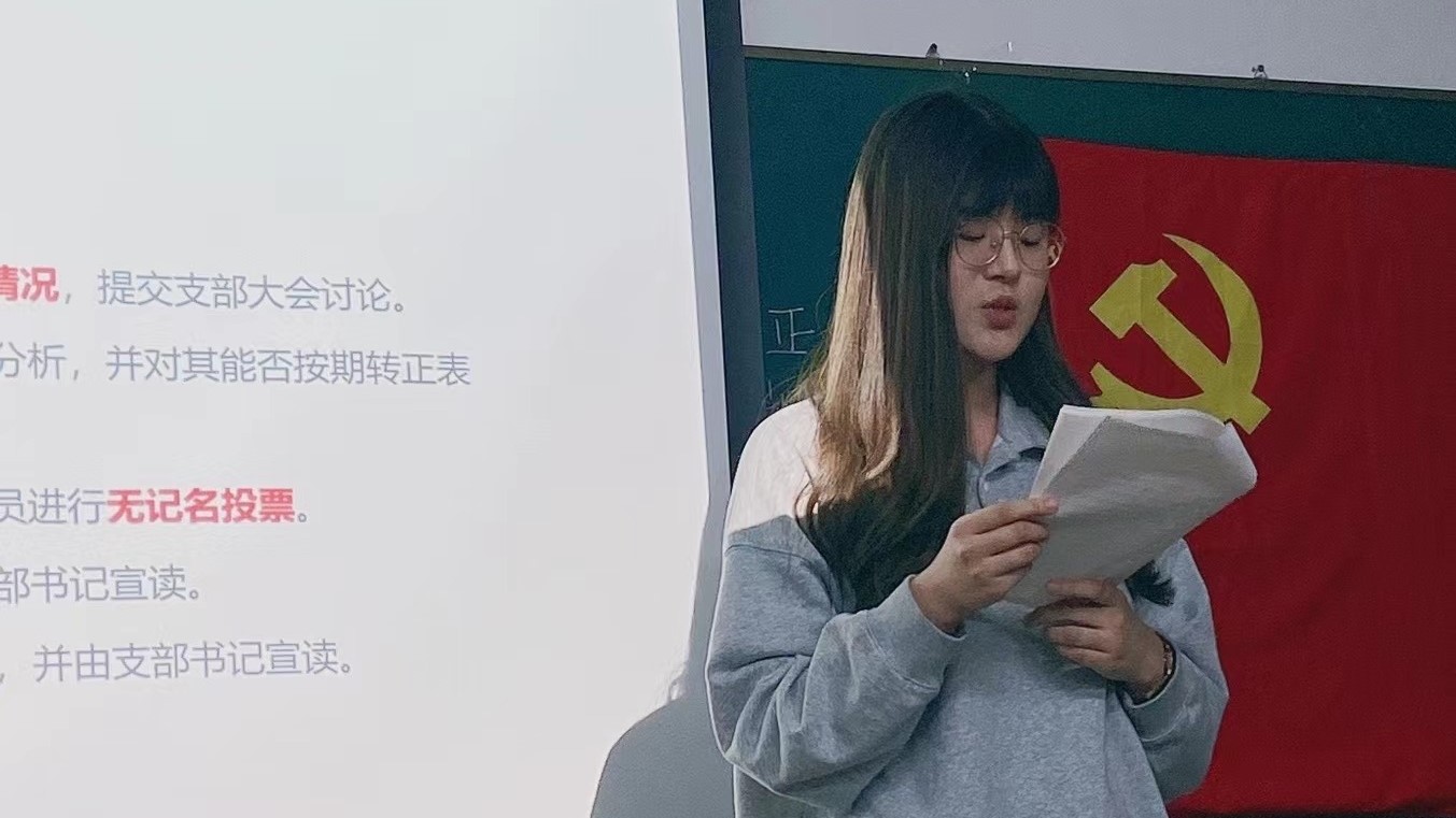 4月22日,房慧同志首先带领支部成员学习了习近平总书记在北京冬奥会、冬残奥会总结表彰大会上的重要讲话精神。她从重大成就、表彰、宝贵经验、冬奥精神、冬奥遗产五个部分进行了解读。多位同志畅谈了自己的学习体会。随后,支部讨论了崔梦婷、宋历恩、孙婧婷、王婧涵同志的转正事宜,4月29日讨论了陈瑶和王韫玮同志的转正事宜。经各位同志提交转正申请、支委会介绍考察意见、支部成员充分讨论,与会正式党员进行了无记名投票,支委进行了计票和监票,各位预备党员均获全票赞成,顺利转为正式党员。袁胜轩同志宣读了票决汇总表和转正决议,新转正的正式党员发表了各自的认识和感想。接着,支部确定鲁佳男、何睿韬两位同志为入党积极分子。最后,通过选举,房慧和宋继龙两位同志分别当选纪检委员和联络员。