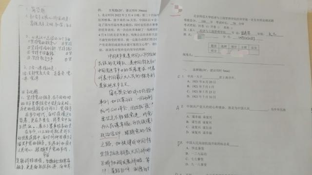 接着,2022年4月27日,支部组织待发展的入党积极分子在后主楼1629会议室进行党史知识测试,考察范围包括党史知识、《中国共产党章程》、《中国共产党关于党的百年奋斗重大成就和历史经验的决议》、《中华人民共和国国民经济和社会发展第十四个五年规划和2035年远景目标纲要》等,测试方式采用笔试进行,对线上参与同学进行双机位监考,确保测试的公平公正。试题由支委会成员集体命制,并采取集体阅卷赋分,确保评分标准的统一。