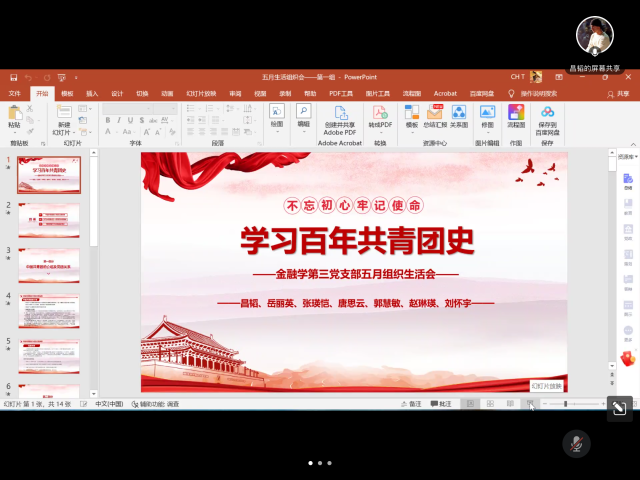 2022年5月27日,潮人论坛 金融学第三党支部在腾讯会议举办“新时代新青年”主题活动,学习共青团史、师大校史,感悟新青年的责任担当。学院双肩挑辅导员陈夙老师莅临指导此次会议。