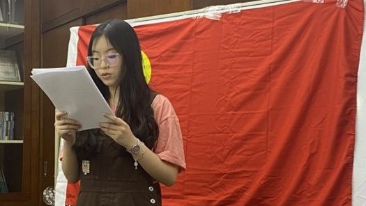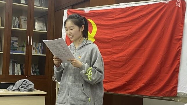 接着,李琦同志与彭忆冰同志先后在党旗下宣读了《入党志愿书》,向党组织汇报个人基本情况。入党介绍人王佩琪同志介绍发展对象的有关情况,认为李琦同志与彭忆冰同志在考察期间能够达到共产党员的基本要求,同意发展其为预备党员。支部书记刘松月宣读对发展对象的政审报告和公示结果。支部大会对两位同志进行了客观评价,分析讨论了发展对象的优缺点,并且围绕发展对象的入党动机、理论素养、综合素质等方面进行了提问。随后,支部具有表决权的14名正式党员对发展对象进行了无记名投票,监票人惠晓辰同志与计票人王佩琪同志进行唱票,并由王佩琪同志填写接收预备党员票决情况汇总表。支部书记刘松月宣读票决汇总表和接收预备党员的决议,两位发展对象均全票通过。最后,李琦和彭忆冰同志发表了被接受为预备党员的感想与认识,李琦同志表示她会继续扎实理论学习,并相信“长风破浪会有时,直挂云帆济沧海”,以后自己会更加坚定乐观;彭忆冰同志表示她能有机会接受到的大家建议是十分珍贵的,以后会更加严格要求自己,向着一名合格的共产党员靠拢。