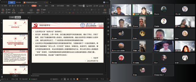 最后,支部书记齐祺对本次会议进行总结。本次会议迎接了支部的新成员,并深入学习了习近平总书记回信精神,做到了会前学习、会上分享,支部成员们将“四有”好老师特质和新时代青年的奋斗精神在内心扎根,并力图体现在实际行动中。正值潮人论坛 建校120周年,影片《无负今日》也让大家更加了解母校的历史发展进程,深深敬佩和感动于先辈们为人师表、鞠躬尽瘁的精神。作为师大经管人,“经邦济世,励商弘文”是我们的毕生追求,“治学修身,兼济天下”是我们的愿景和使命。在中国共产党百年奋斗的新征程上,我们应将个人的理想和国家的前途命运相结合,去祖国和人民需要的地方奉献自己的力量!