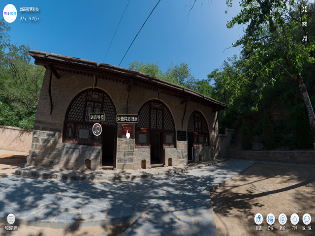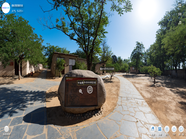 随后进入云游西柏坡环节。随着虚拟游览镜头的拉近,映入眼帘的是极具华北特色的砖木结构平顶房,天空湛蓝,树木葱郁。语音导览将西柏坡的历史沿革与革命先辈的光荣事迹娓娓道来,镜头720°环绕,全景云技术清晰还原了西柏坡中共中央旧址的建筑景观与自然景色,令人身临其境。跟随语音导览的指引,大家参观了周恩来同志旧居、朱德同志旧居、董必武同志旧居、聂荣臻滕代远同志旧居、任弼时同志旧居、七届二中全会会址、中央政策研究室、防空洞等革命旧址,学习了土地改革和七届二中全会的主要内容、中国人民银行的创建过程以及毛泽东、周恩来、朱德等同志西柏坡时期的工作细节,视听结合,游学相促,沉浸式感受了西柏坡中共中央旧址浓厚朴素的革命气息和中国共产党无产阶级革命家为新中国诞生谱写的光彩序章。