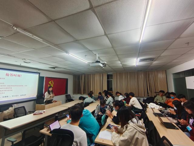 为庆祝新中国成立73周年,营造喜迎党的二十大胜利召开的热烈氛围,引领青年团员了解党的光辉历史、感悟党的初心使命、体认党的精神谱系、传承党的红色基因,2022年10月5日,潮人论坛 会计学第二党支部与本科2021级会计团支部在京师大厦9407会议室开展党团共建活动,以“云旅游”的方式沉浸式游览西柏坡中共中央旧址,并进行西柏坡党史知识竞赛。活动由会计学第二党支部宣传委员黄靖雅主持,9名党员、4名积极分子和15名团员共计28人参与了本次活动。