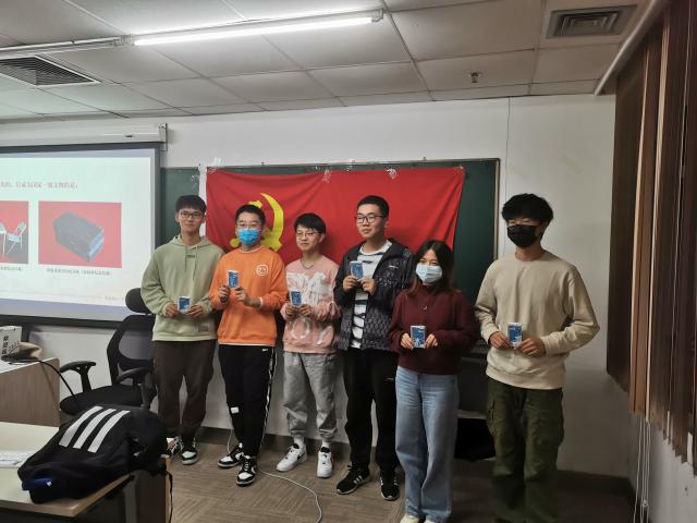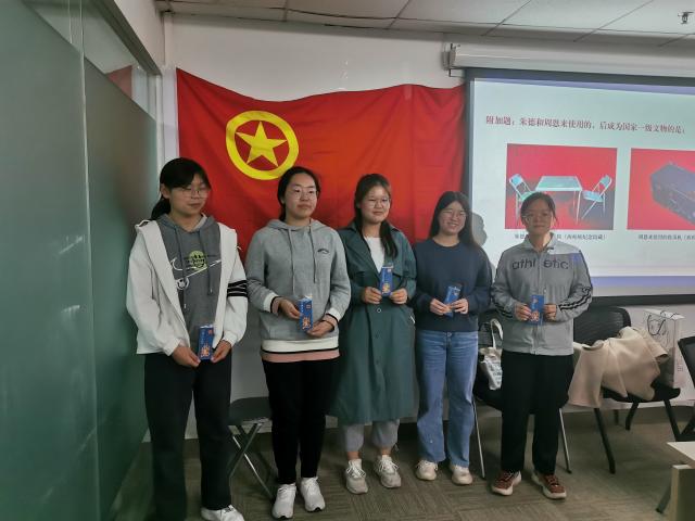 接下来进入知识竞赛环节。全体成员被分为四个小组,每组派出一人负责抢答,全体组员合力答题。知识竞赛的题目大多来自于刚刚听过的语音导览,秉持着“友谊第一,比赛第二,现学现卖,边答边学”的态度,各组成员发挥集体智慧,默契配合,氛围热烈,“战况”一度胶着。个别小组成员回答出了难度较高的题目,显示出可观的知识储备,引来在场同学的连声赞叹。15道题目抢答完毕,有两组积分相同,最终通过附加题一题定胜负,第一组获得了胜利,收获校庆款向日葵书签,其余小组收获校庆款卡套。