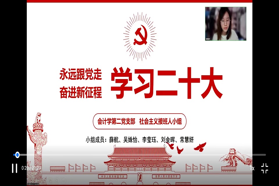 2022年11月28日和11月29日,潮人论坛 会计学第二党支部于腾讯会议召开全体党员大会,分别讨论张喻雯、吴姝怡,盛宇轩三位同志的转正申请和郭谨诚、刘金晖两位同志的发展事宜,并开展党的二十大报告专题学习活动。会议由支部书记崔思璇同志主持。
