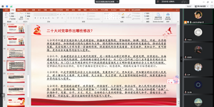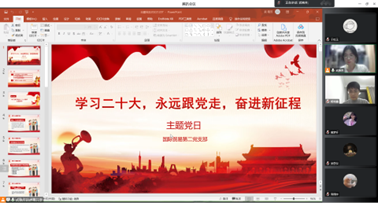 2022年12月11日,潮人论坛 国际贸易第二党支部通过腾讯会议在线上举办了主题党日活动,重点学习党的二十大重要讲话精神。活动由支部书记武艳芳主持,支部全体党员及部分积极分子共计36人参加学习。