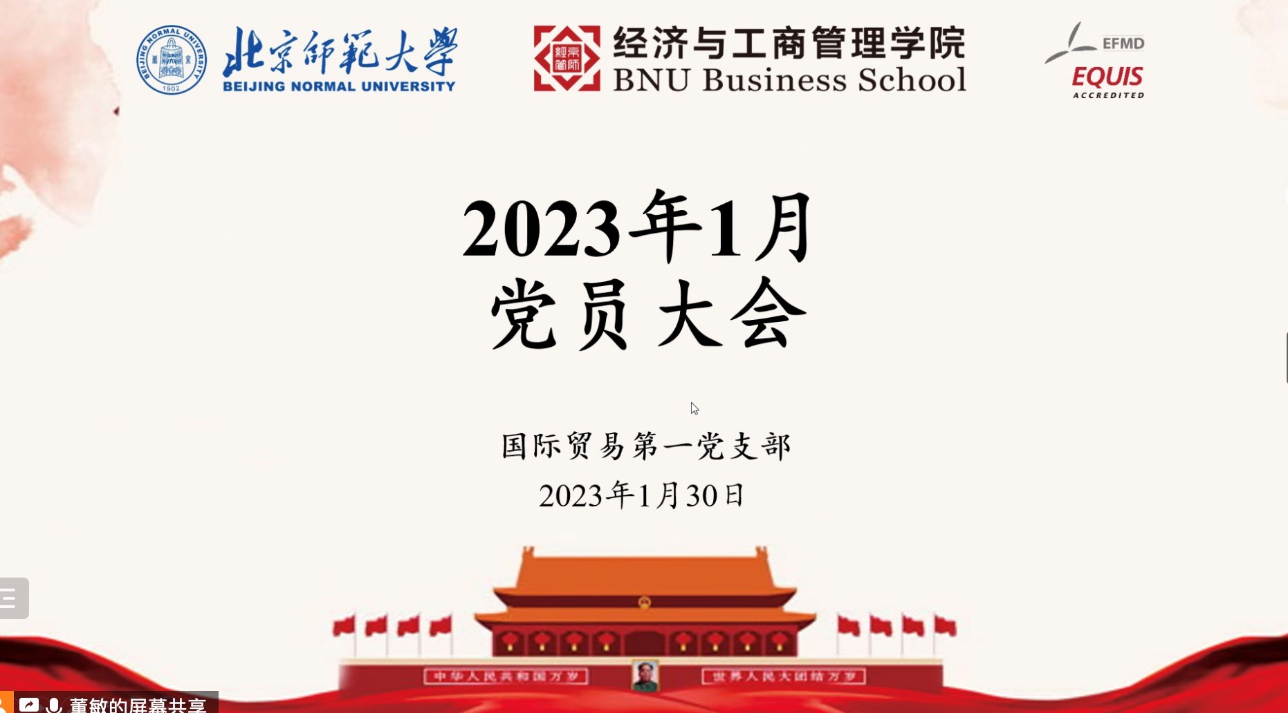 2023年1月30日,潮人论坛 国际贸易第一党支部通过腾讯会议召开全体党员大会,进行支委会换届选举。会议由支部书记董敏主持,国际贸易第一党支部包括党员与积极分子在内共计44名成员参加了会议。