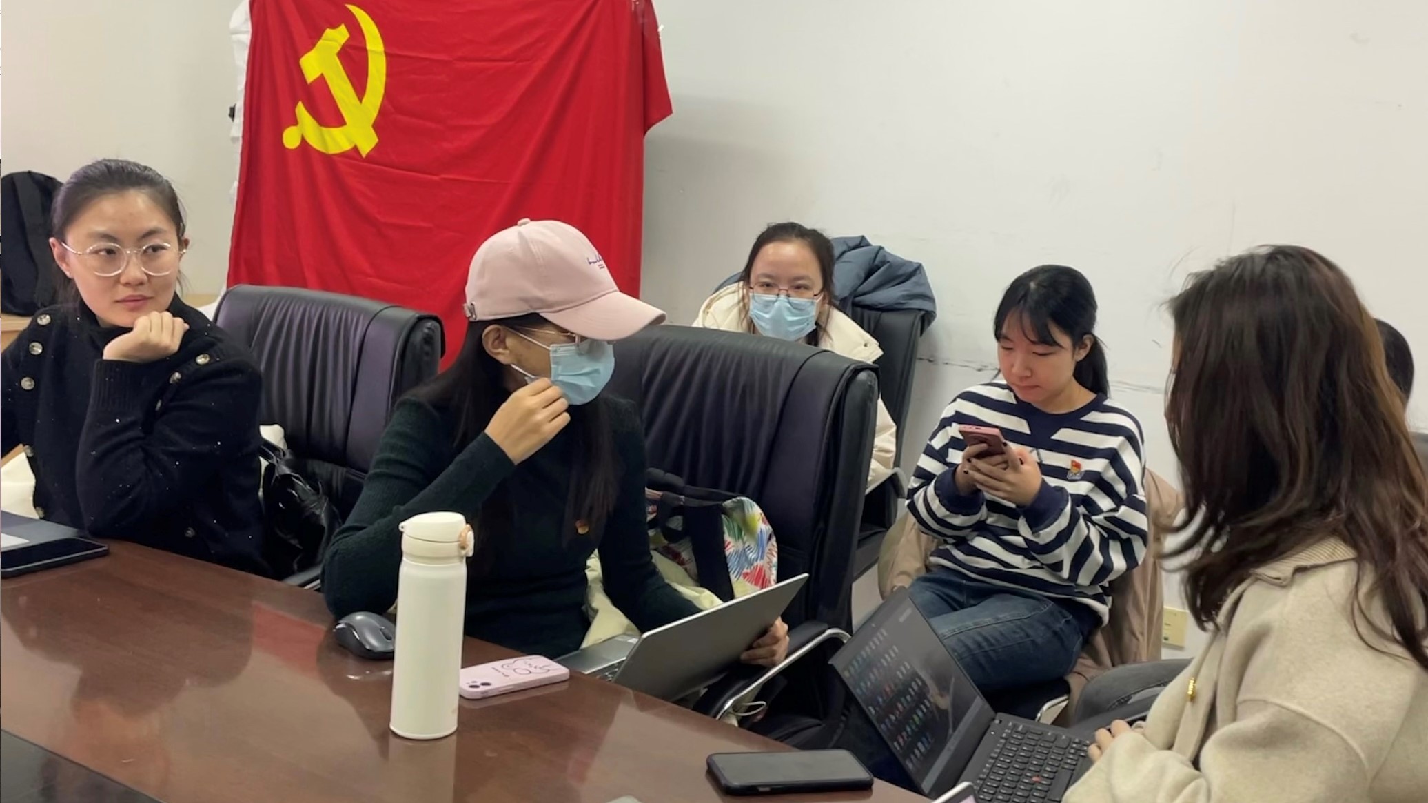 首先,徐荧介绍了本次组织生活会的专题学习主题,开展以小组为形式的学习研讨。第一组的成员有姜浩、熊胤廷、杨笑鸣、王琢琬、李颖、杨志琴,学习主题为党的二十大报告和新修订党章;第二组的成员有曾笑萍、赵婧、卜宪微、柳钰莹、旷祎诺、闻田果,学习主题为习近平总书记重要回信精神。两组内部进行讨论交流,每位党员均结合个人经历分享了自己对理论内容与精神的学习感悟。