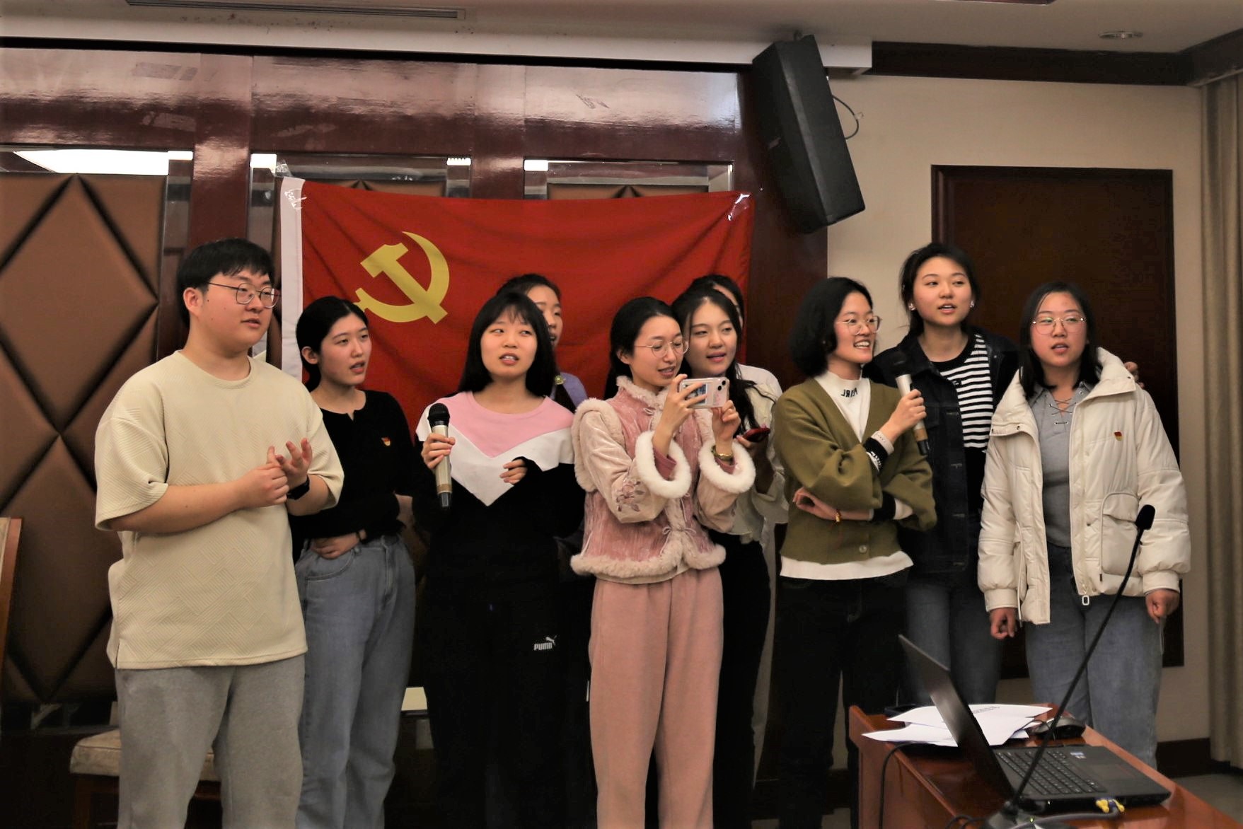 晚上,师生齐聚一堂,组织了一场寓教于乐、温暖有爱的团建活动,在击鼓传花、抱抱团、你画我猜、传声筒等游戏中学习党的创新理论、国情世情、“四史”校史等党政知识,妙趣横生又富有教育意义,最后全员集体合唱歌曲《国家》,展现出全体师生深厚绵长的爱国情怀和砥砺奋进新时代的赤子之心。