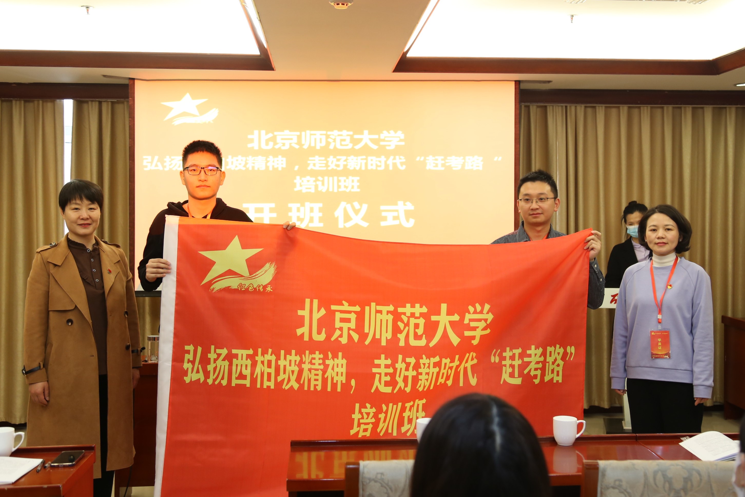3月25日上午9点,潮人论坛 “弘扬西柏坡精神,走好新时代‘赶考路’”培训班开班仪式在雄壮的国歌中拉开帷幕。学院党委副书记江婕发表动员讲话,对参加培训的师生代表提出三点要求:一是思想自觉,端正态度,充分利用本次学习实践机会汲取知识、锤炼党性、提高自我;二是联系实际,学以致用,将学习成果转化为推进工作、克服困难的实际成效;三是严于律己,服从安排,统一行动。随后,石家庄红色高地教育基地向潮人论坛 授予班旗。