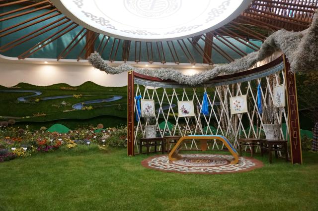 在中华园艺展示区中,似龙骨的巨型金黄屋架,是自然和科技的结合,金黄玻璃是一块块与建筑融为一体的光伏电池。在中国馆一层和二层,30多个省区市展厅精彩纷呈,中华大地的园林景观,宛如山水画卷徐徐拉开。“绿色生活,美丽家园”的主题一点点展现在我们面前。