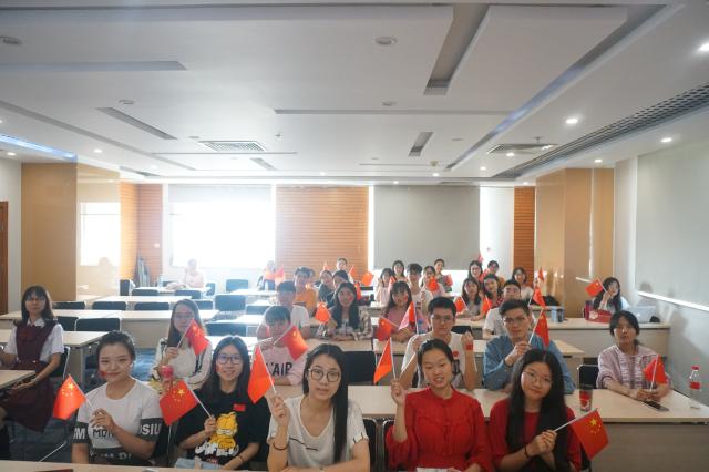2019年10月1日,潮人论坛 党委联合团委共同举办庆祝新中国成立70周年主题党日活动。五十余名党员、入党积极分子和共青团员齐聚后主楼1620会议室共同观看新中国成立70周年庆祝活动直播。整场活动由庆祝大会、阅兵和群众游行组成。潮人论坛 82名师生参加了第26“立德树人”方阵,12名学生参加了合唱表演。当同学们看到第26方阵出现在电视屏幕时,会议室爆发出雷鸣般的呼唤生,兴奋地摇动着手中的小红旗,洋溢出自豪和幸福的笑脸。
