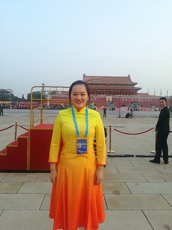 经济学第五党支部预备党员、2018级经济学本科生李文路向大家介绍了庆祝新中国成立70周年广场合唱活动。李文路同学分享了广场合唱团队的组建、训练和彩排经历。李文路同学着重分享了自己的入党过程。从递交入党申请,到成为一名入党积极分子,再到发展一名预备党员,她的入党与这次国庆专项活动密不可分。在与有着同样理想信念的青年朋友们并肩战斗的三个月,她不断强化理想信念,勇于担当作为,以求真务实作风把每一次训练落到实处。