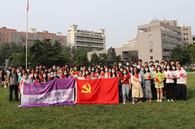 在慷慨激昂的国歌声中,五星红旗冉冉升起。全体师生党员面向党旗重温入党誓词,铭记初心使命。学校党委学生工作部隋璐璐部长从有理想、有担当、有本领三个层面对学生党员提出建议和要求。活动的最后,与会师生合唱《没有共产党员就没有新中国》,共同感受党组织的磅礴力量。