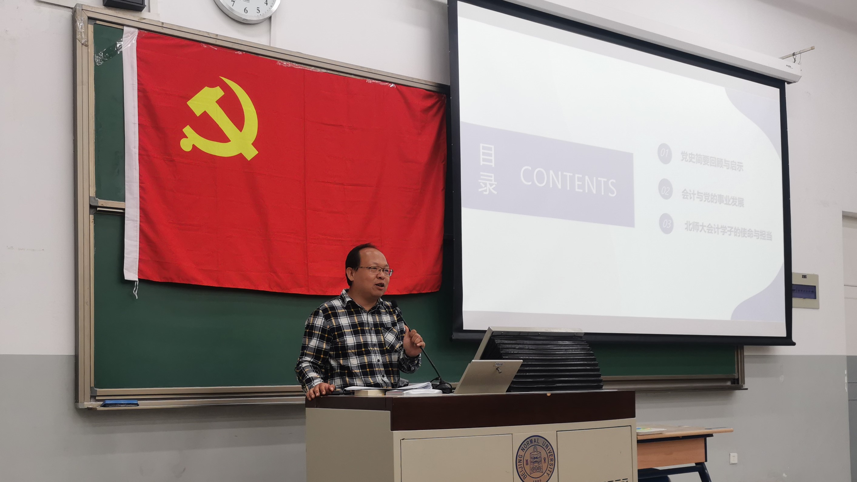 图48 我院教工会计党支部书记李欲晓副教授为会计学第一党支部党员讲授“加强党员的党性修养”主题党课