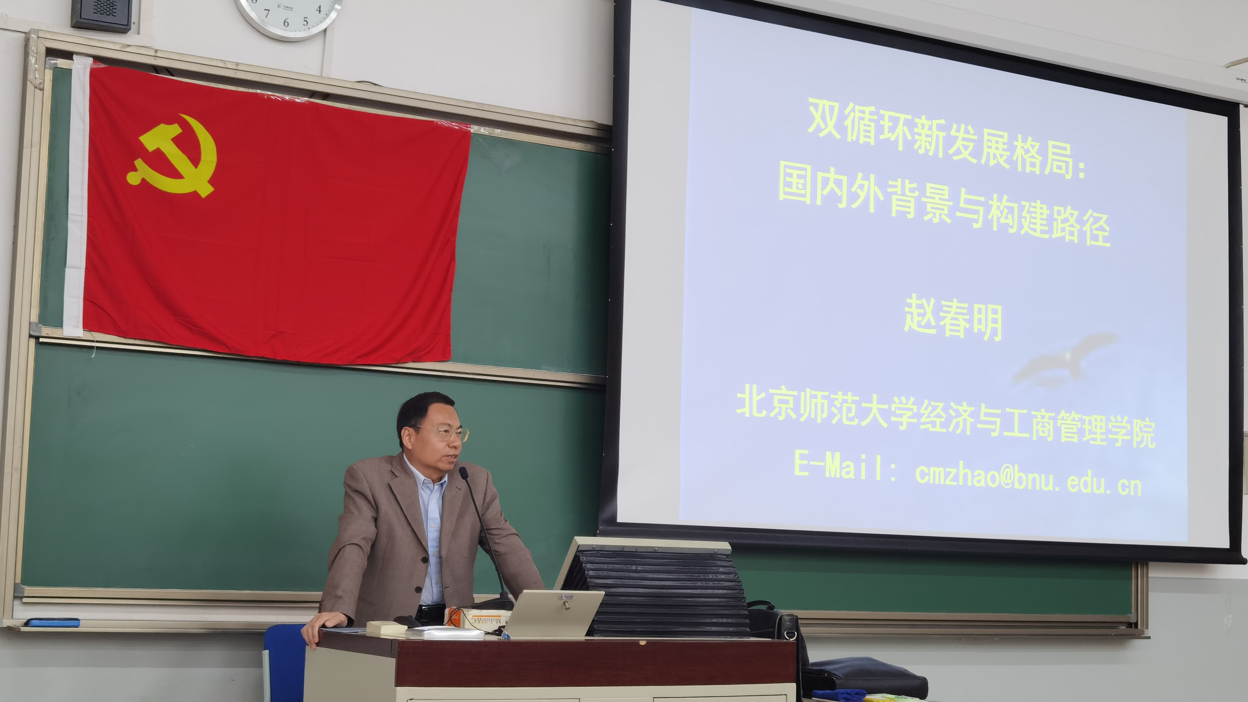 图37 我院赵春明教授讲授“双循环新发展格局:国内外背景与构建路径”主题党课