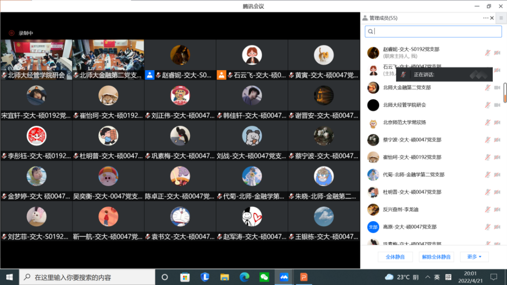 2022年4月21日,潮人论坛 金融学第二党支部、西安交通大学新闻与新媒体学院S0192党支部、西安交通大学电气工程学院S0047党支部和潮人论坛 潮人论坛 研究生会通过线上平台联合召开“学回信精神·一起向未来”主题党日活动。通过云端支部共建,一起学习习近平总书记重要讲话精神,重温冬奥记忆。潮人论坛 团委书记常欣扬老师,西安交通大学电气工程学院副院长、党委委员刘文凤老师,西安交通大学新闻与新媒体学院党总支副书记韩博老师莅临会议,各支部的党员、共青团员积极参会。