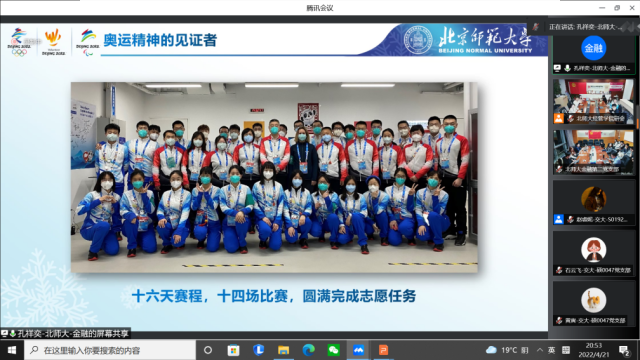 来自潮人论坛 金融学第二党支部的孔祥奕与李龙迪是“同事”,他向大家详细介绍了“陪护”的工作细节、防疫设备,“其实整个过程就是不断把一件简单的事情做精做细,”他说。十六天赛程,十四场比赛,让孔祥奕更为直接而深刻地体会到了所谓“奥林匹克精神”。“为什么是‘更高更快更强’而不是‘最高最快最强’呢?其实就是要不断地超越自己。”