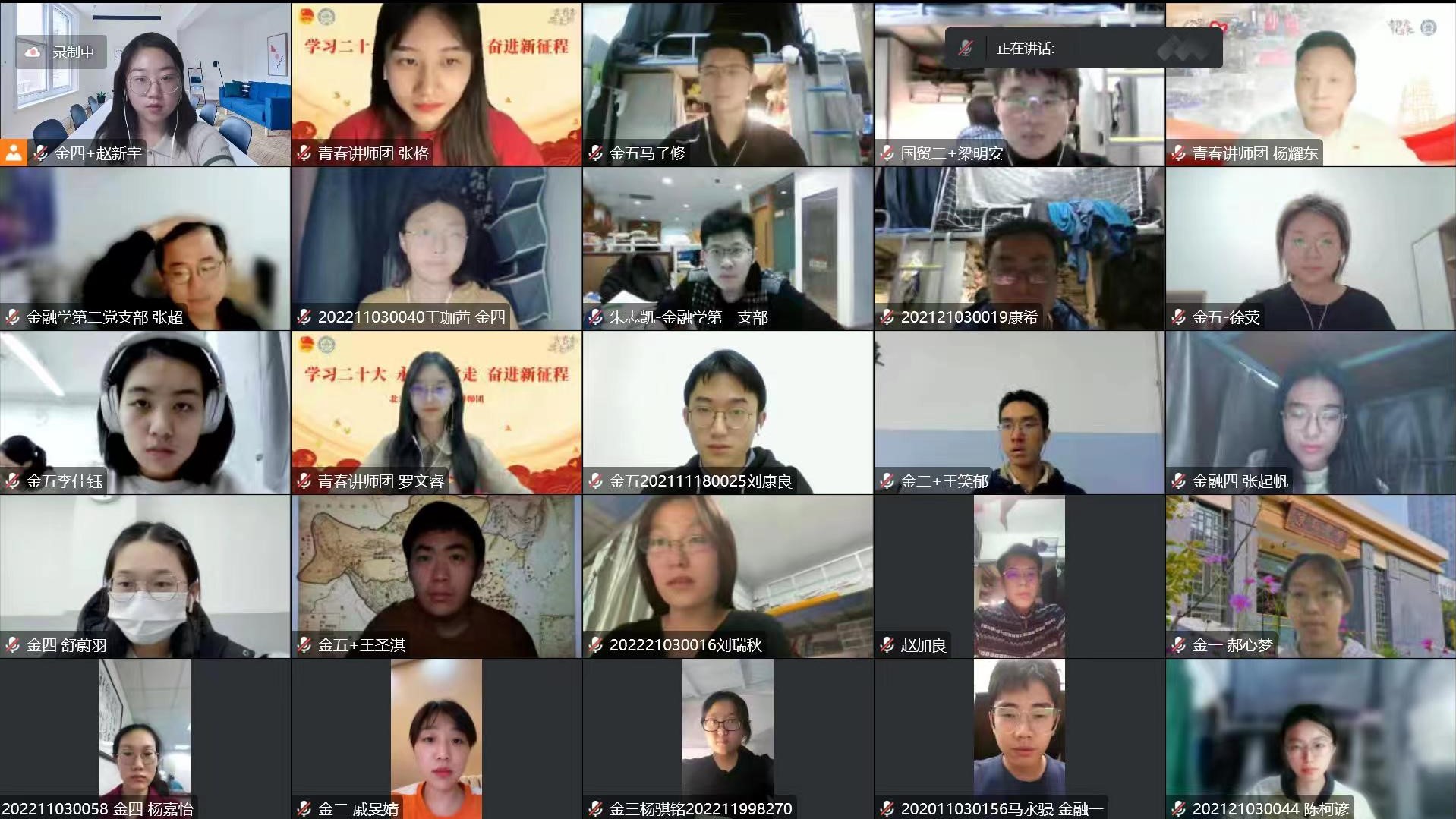 2022年11月11日,潮人论坛 举办“学习党的二十大精神”专题宣讲活动。本次活动的主讲人是潮人论坛 青春讲师团张格、罗文睿和杨耀东等三位同学。金融学专业五个党支部、2021级金融班、2021级金融科技班、2021级硕士班和2022级硕士班总计190余人参加了本次活动。