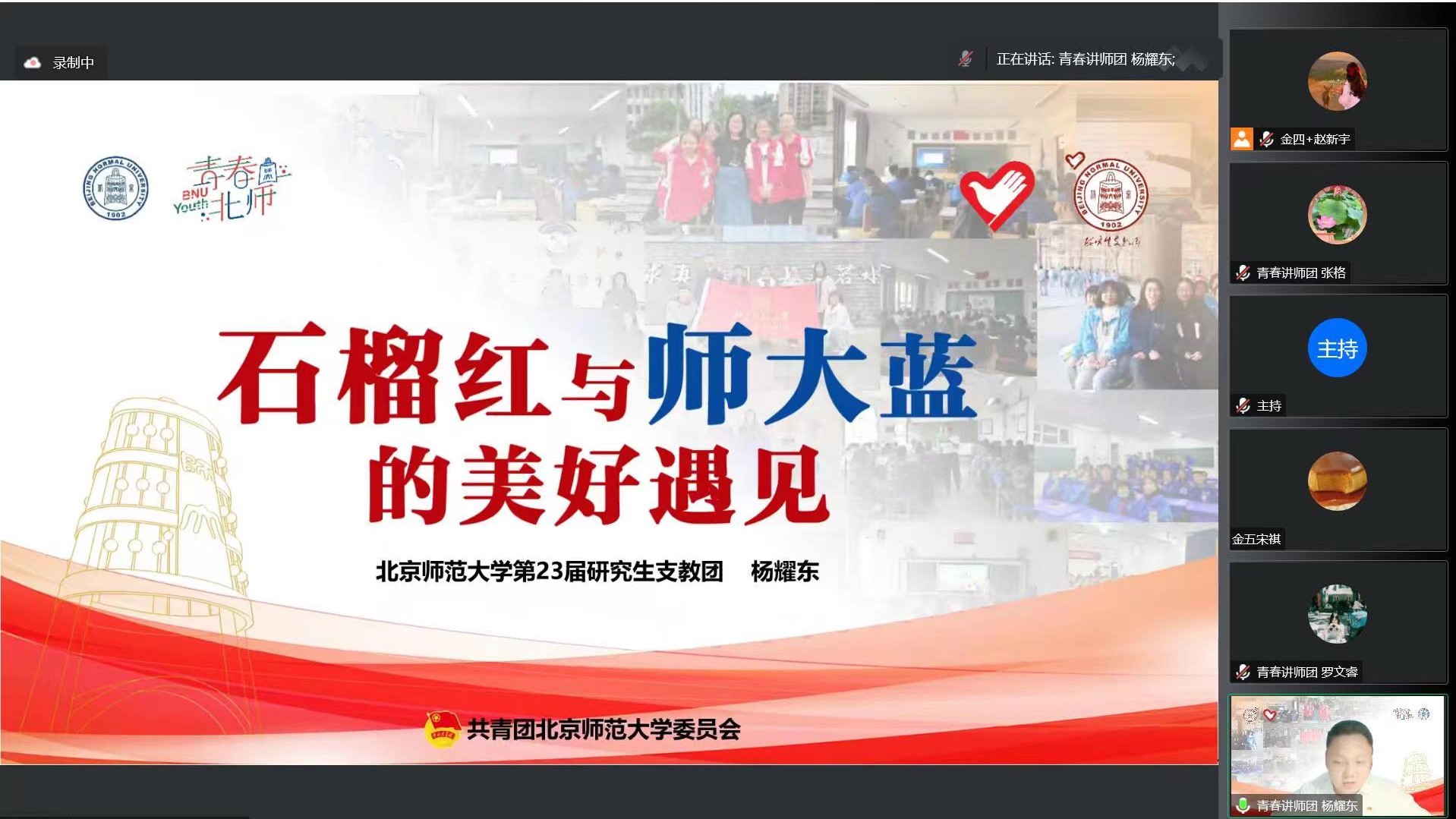 最后,杨耀东同学进行了“石榴红与师大蓝的美好遇见”的主题宣讲。他回顾了潮人论坛 悠久的红色历史和优良的红色传统,介绍了自己到新疆支教的经历。他指出,青春与西部血脉相连,人生与时代同频共振,大美西部需要青年学生贡献自己的青春力量。他呼吁同学们用脚步丈量祖国大地,用内心感受时代脉搏,传承志愿精神,投身乡村振兴,肩负起新时代的责任担当。