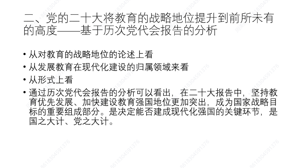 首先,孙老师介绍了党的二十大报告关于教育的论述,并梳理历次党代会对于教育事业发展的战略安排,指出党的二十大报告将教育提到前所未有的高度,特别强调“教育”在现代化建设中的基础性、战略性支撑作用。