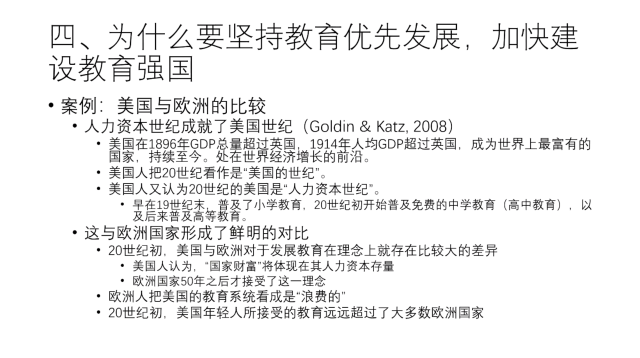 随后,孙老师结合丰富资料,向大家介绍了“坚持教育优先发展、加快建设教育强国”的由来、内涵及现实意义。他指出,改革开放以来,我国教育目标经历了从教育大国到教育强国、从人口大国到人力资源强国的转变,“教育优先发展”的内涵越来越丰富。他结合经济学理论与案例,强调了教育对积累人力资本、促进技术进步、推进经济增长的重要作用。