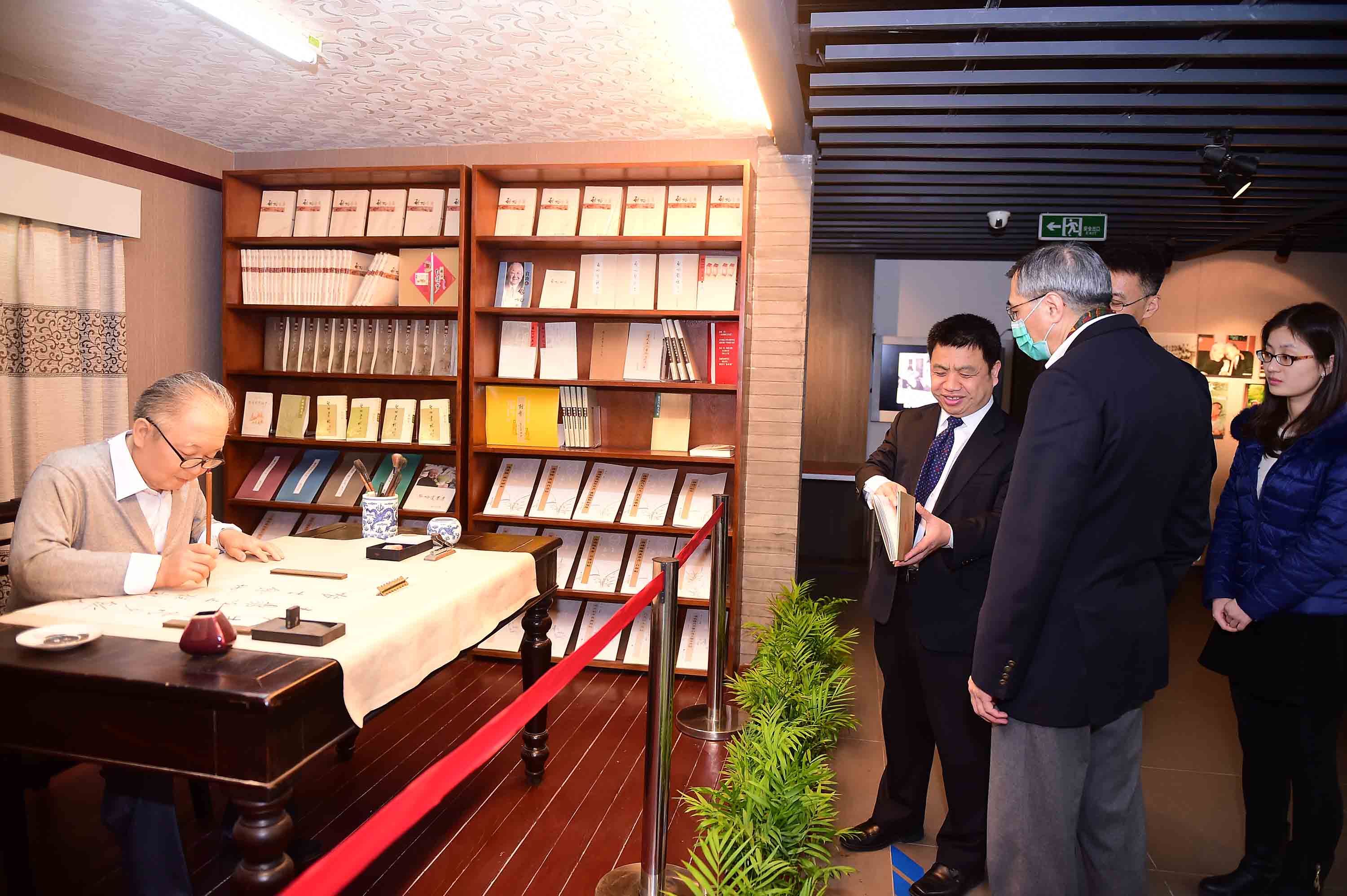 图7:赖院长向罗教授介绍启功先生作品