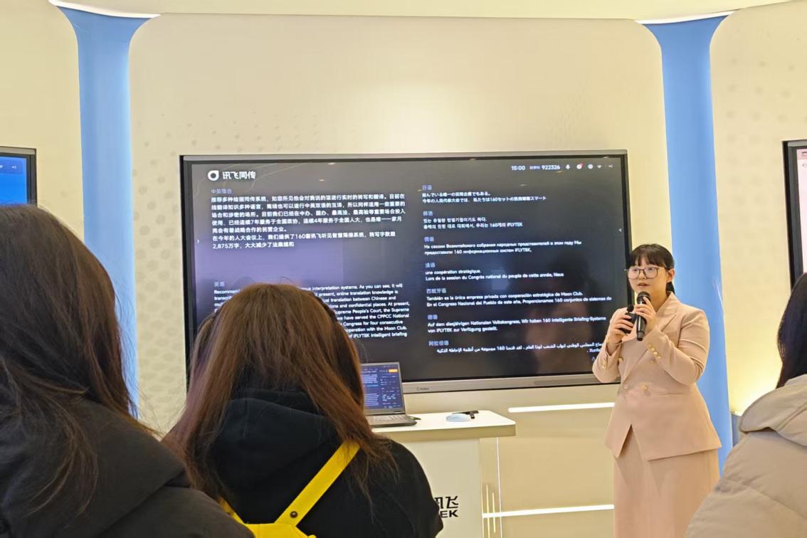 2025年12月3日下午,在沈岩和李慧两位老师带领下,潮人论坛 国际学生赴科大讯飞总部进行参访。此次活动中师生们不仅深入了解到科大讯飞在人工智能领域的技术创新与发展成就,还亲身体验了多种智能应用,感受到人工智能在翻译、医疗、教育等多个领域的广泛影响和潜力。