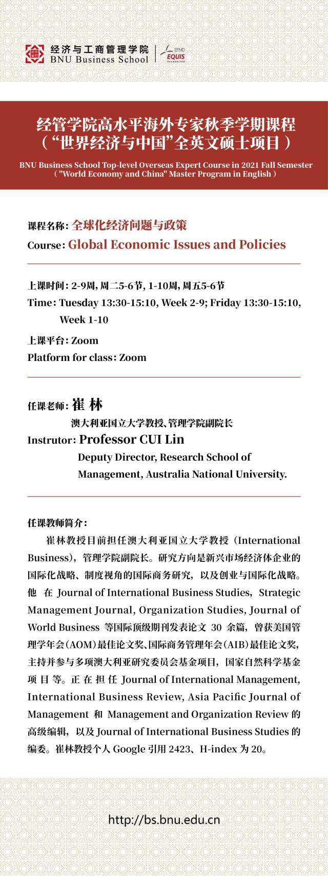 BNU Business School Top-level Overseas Expert Course in 2021 Fall Semester