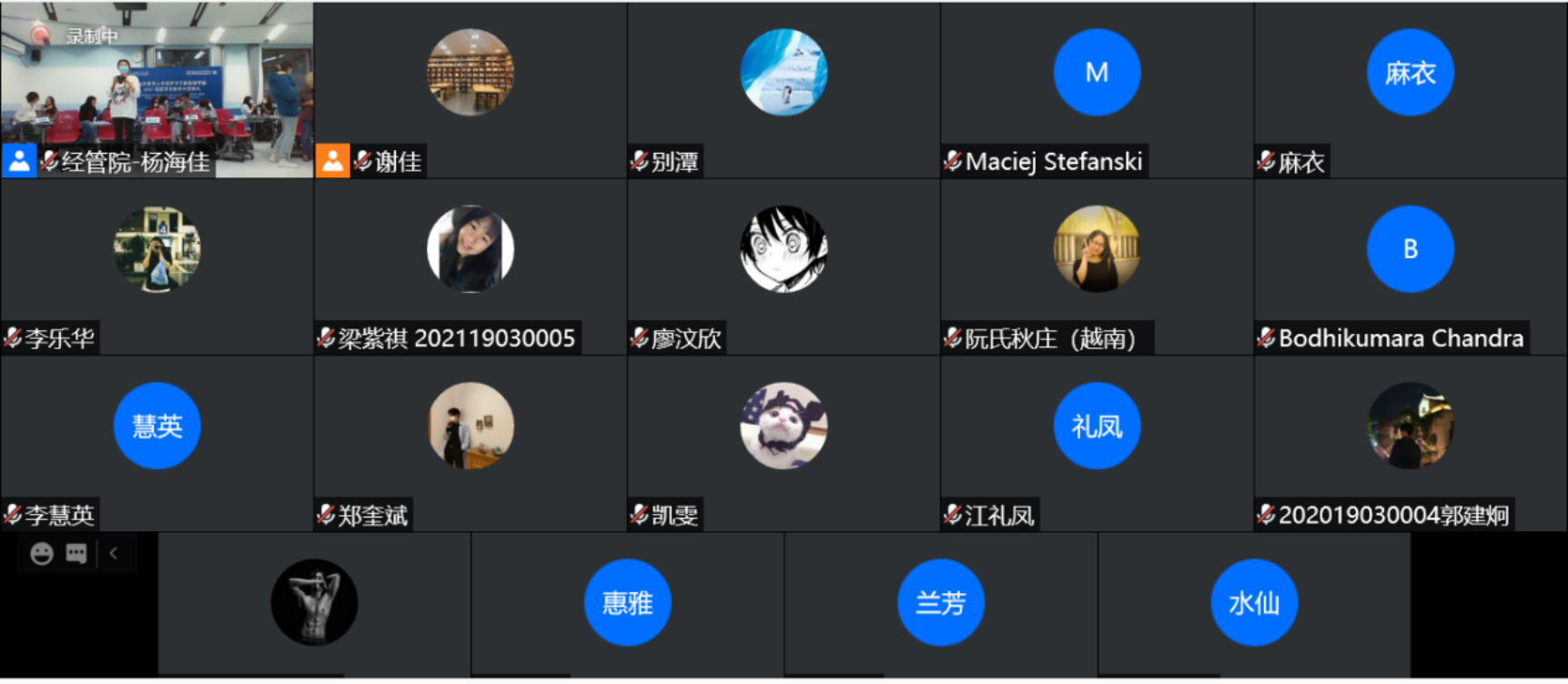 开学典礼在“巍巍师大”的校歌中结束。随后,线上线下的同学们逐一介绍了自己,与任课教师和班主任进行了充分的交流与互动。