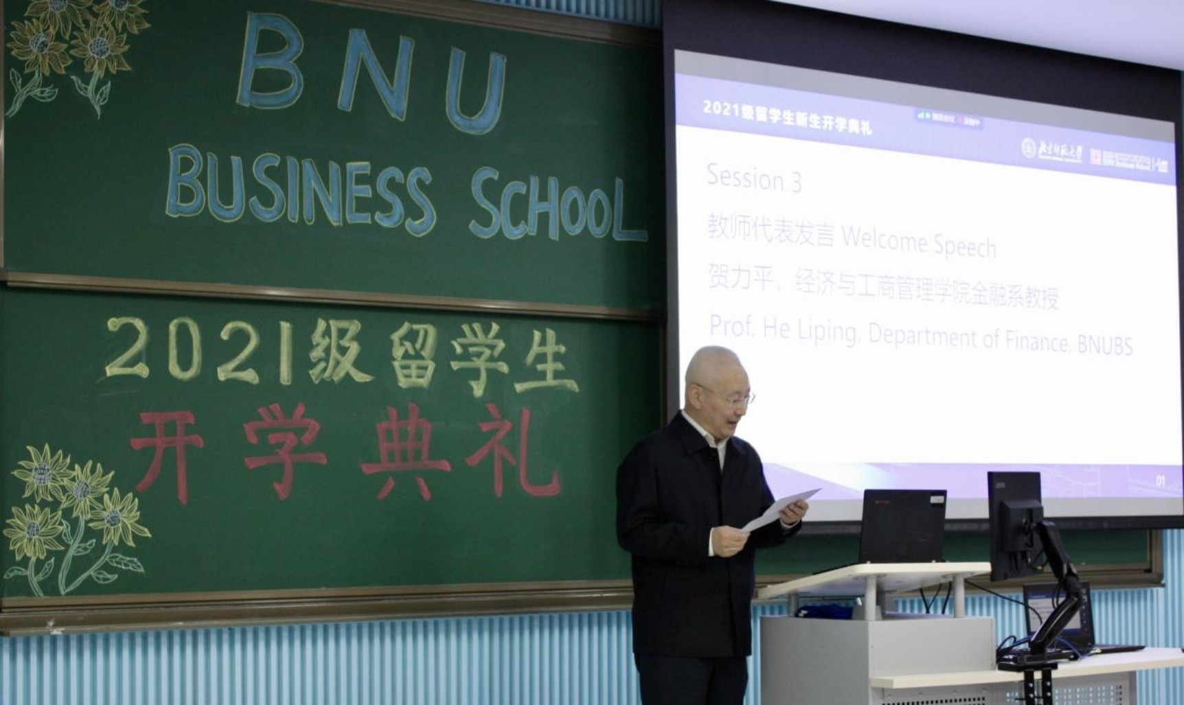 贺力平教授作为教师代表发言。他谈到,疫情使我们分隔异地,但依然不能阻隔我们相聚的心情。他高度赞赏了在疫情下然选择跨境学习的同学们,无论是线上学习或是线下学习,这些经历都将会成为同学们人生长河中一笔巨大的财富。他鼓励同学们做坚强的人,勇于面对学习和生活中的困难和挑战,在学习中明确定位和明晰人生目标,实现人生理想。